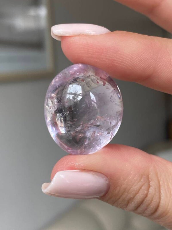 Amethist heeft een beschermende en zuiverende werking. De steen bevordert zelfinzicht en helpt je om eerlijk te zijn naar jezelf toe over gedrag dat schadelijk kan zijn en niet in dienst is van je hoogste zelf.