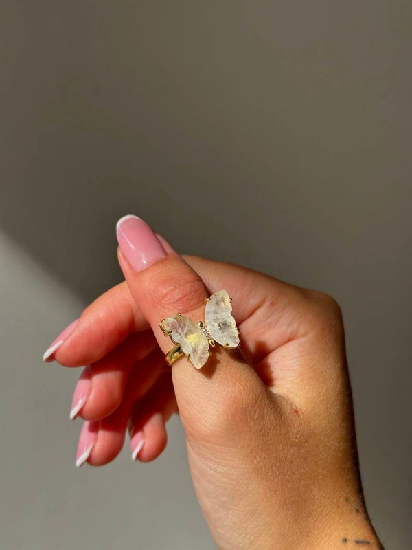 Clear quartz butterfly ring goud | healing