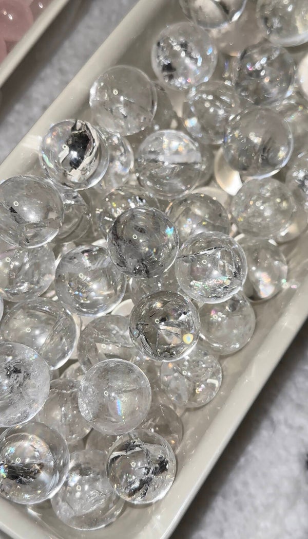Mini clear quartz sphere with rainbow
